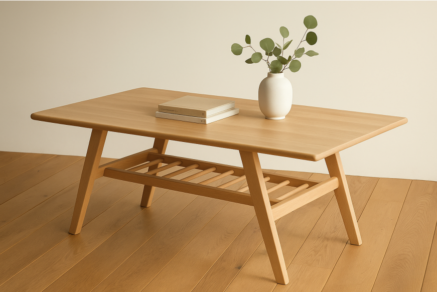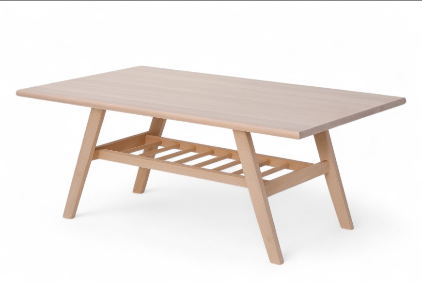 Elegant og stilrent dansk produceret sofabord i massiv træ. inkl. hylde.