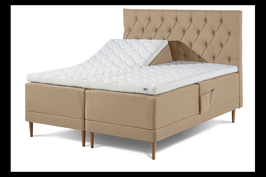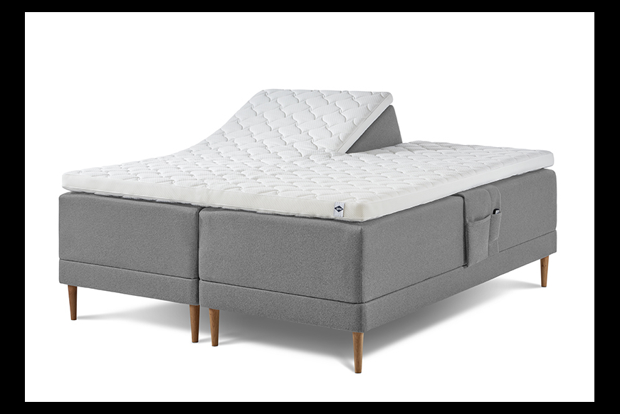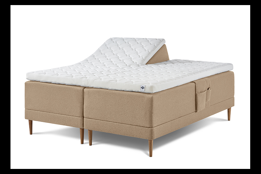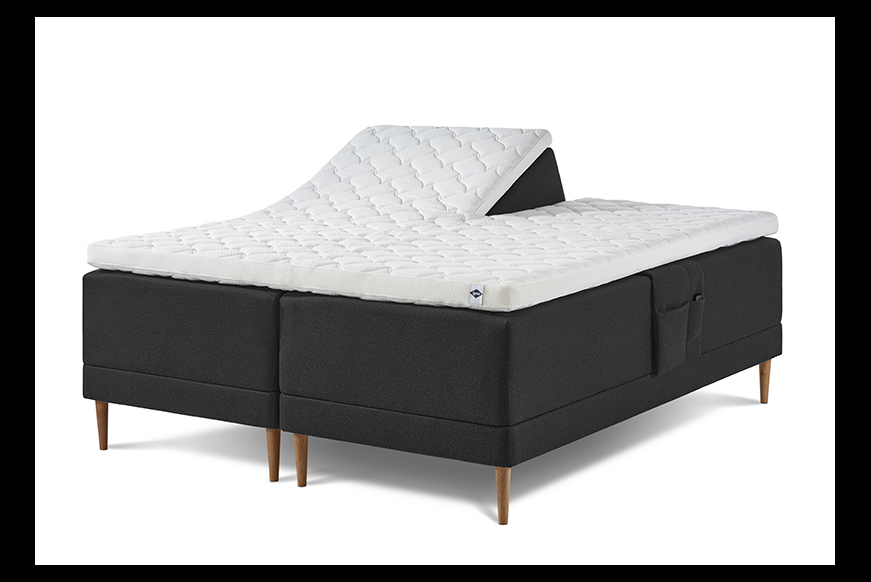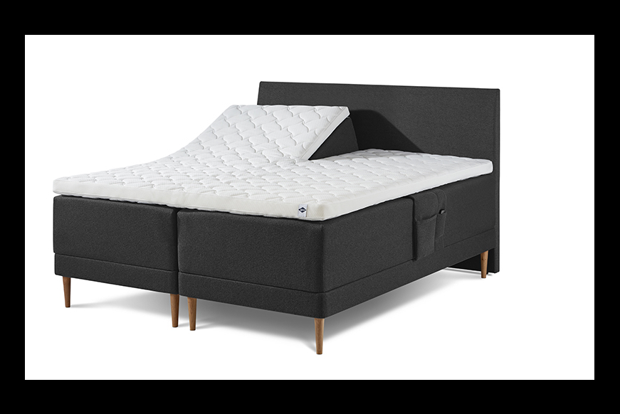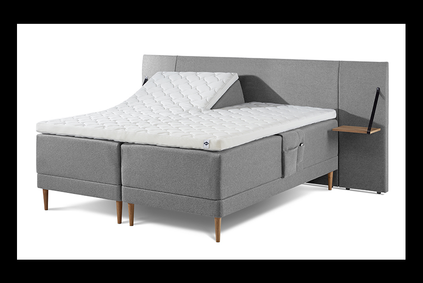 Sengekernen er placeret oven på en kraftig bundplade, som giver en fantastisk stabilitet i sengen. Der er sidelomme i stof til den trådløse fjernbetjening.