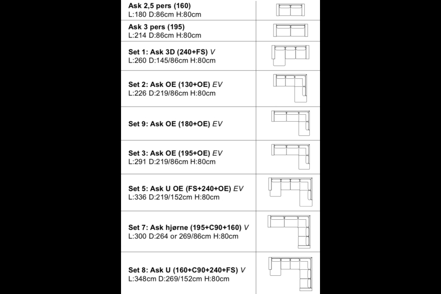 Info: Ask Express 2 1/2 pers.Mål: L: 180 x D: 86 x H: 80 cm