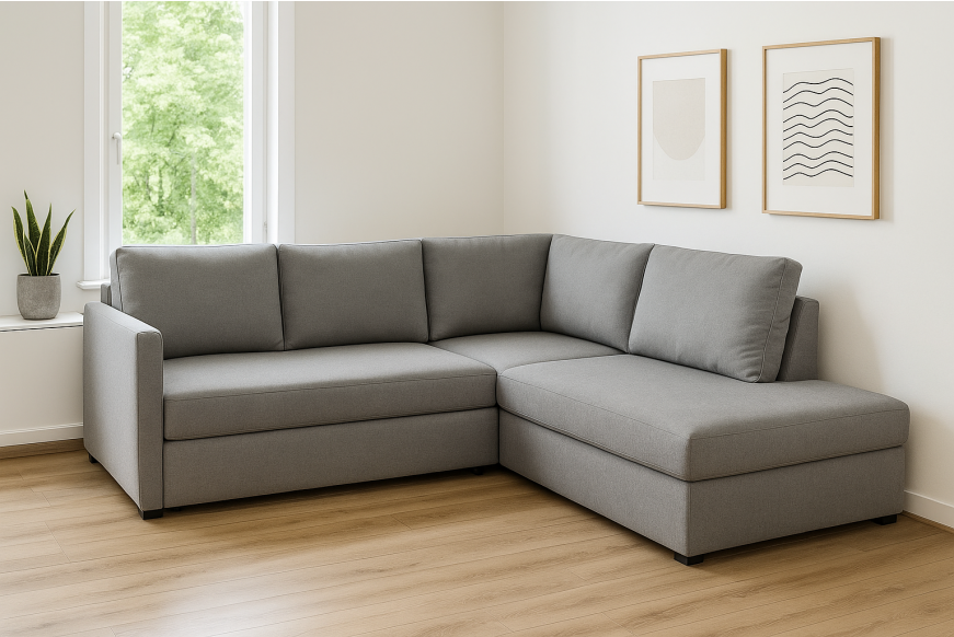 Komfortabel og smart open end sovesofa med med simpelt udtræksystem, koldskums polstret posefjedre i sæde og udtræk, og skum/silikone granulat i ryg puderne. Stort magasin i open end delen. Leveres med vand og smuds afvisende Samoa tekstil. Med opbevaring i magasin.
