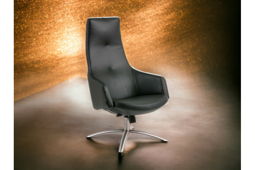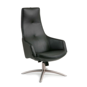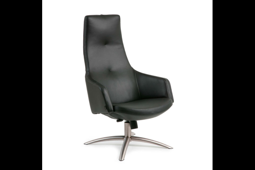 Højrygget hvilestol med læder overalt. Kan også fås i stof. Svensk produceret af Conform.