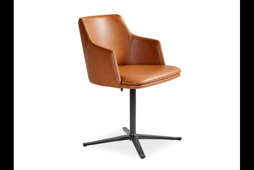 Smart spisebordstol med rigtig god siddekomfort og med drejefunktion. Stolen kan fås i forskellige farver i enten læder eller stof samt med stel i enten blank alu eller sort alu.