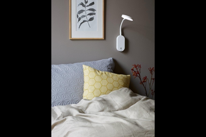 Mason er en lille og praktisk læselampe, der monteres på væggen.