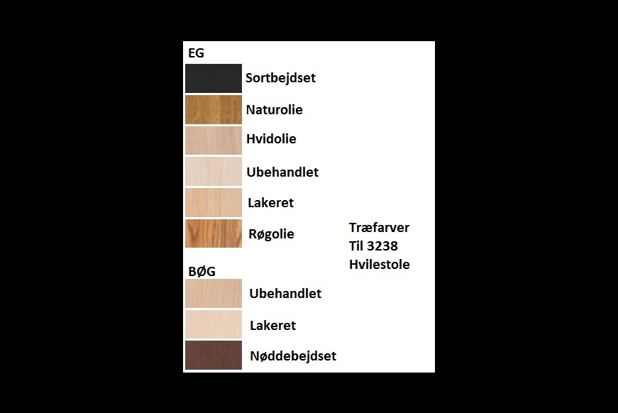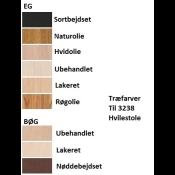 Farver / Materialer: fås i bøg, eg, sort stel, og flere farver stof / læder.