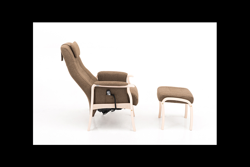 Otium/ hvilestol og skammel, med el-funktion og sædeløft. Fås også i læder.