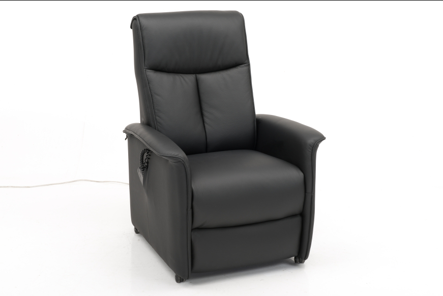 Behagelig løftestol med to motorer i læder. Fås også i stof.
