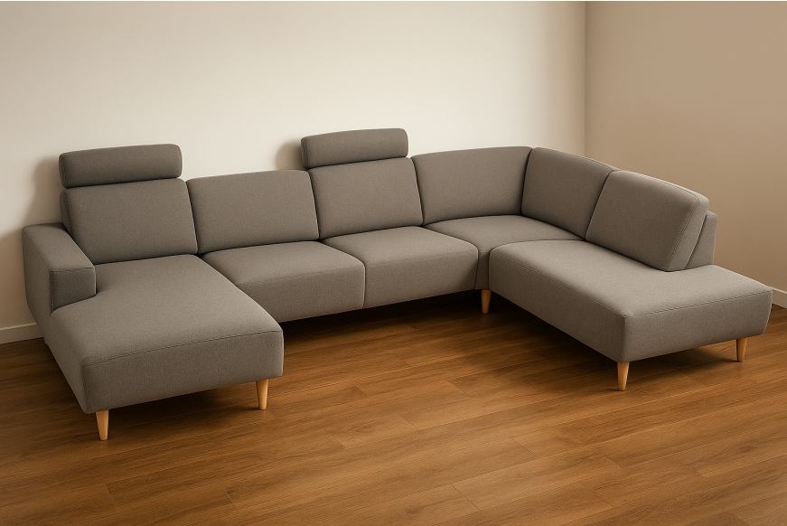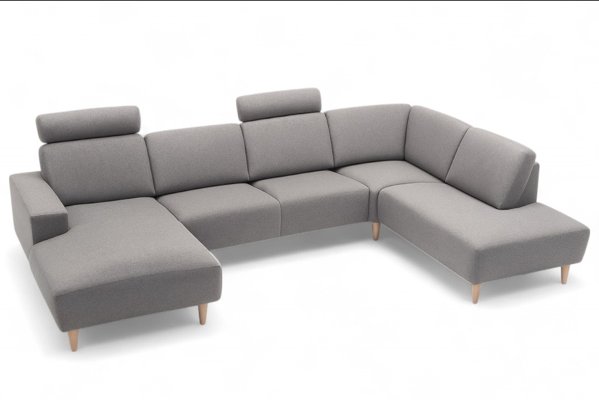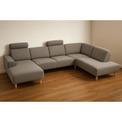 U-sofa med chaiselong i stof . Fås også i læder.