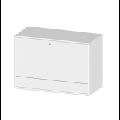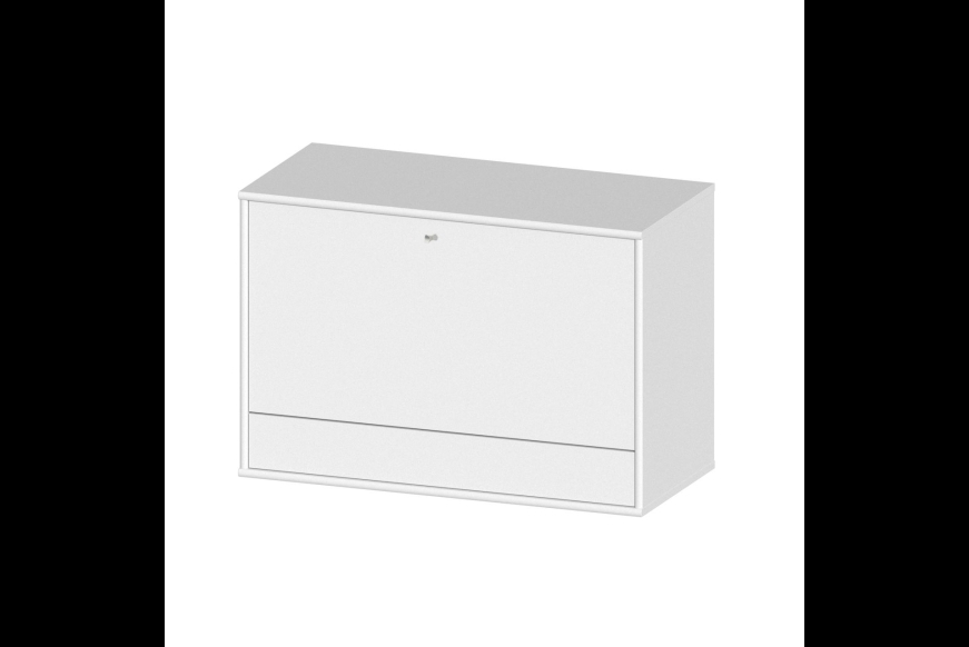 Kan benyttes som skrivebord eller barskab. Stor klap i toppen og skuffe med push front i bunden,