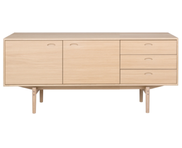 Flot skænk med 3 låger samt 3 skuffer. Kabinettet har elegant geringssamling på hjørner, afrundet forkant samt koniske massive træben. Alle ben har justerbare stillesko.