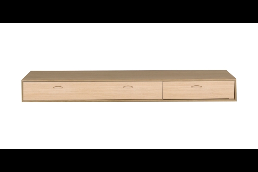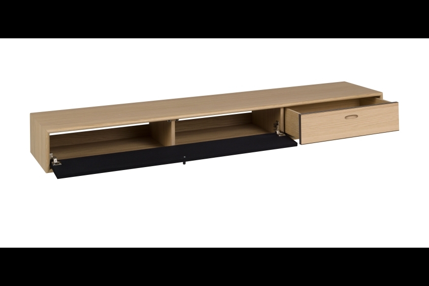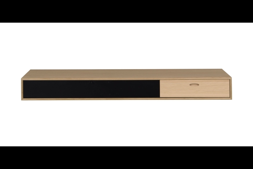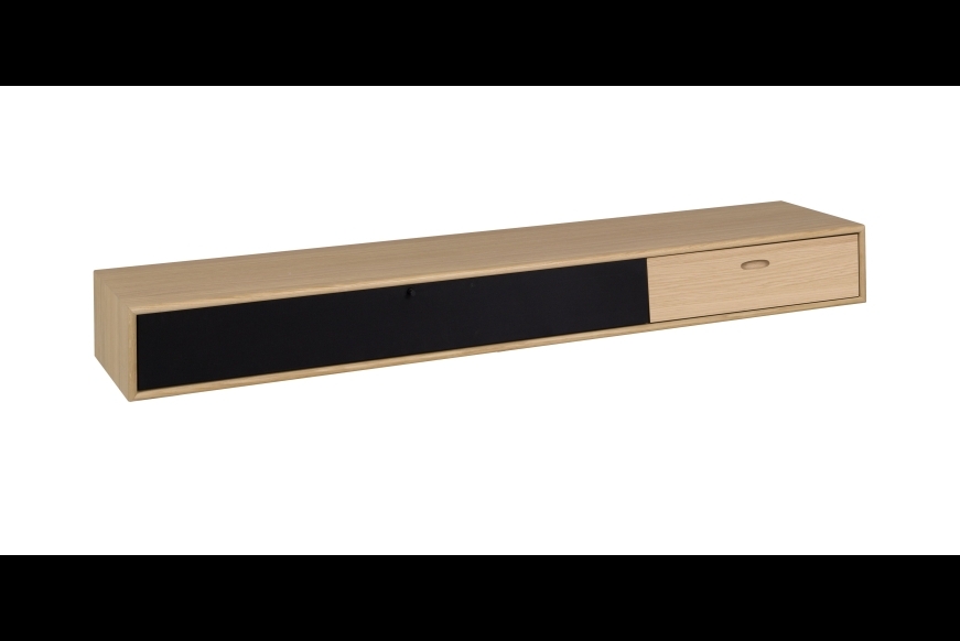 Mediemøbel med 1 stofklap eller træklap og 1 skuffe. Kabinettet har elegante geringssamlinger på hjørner og afrundet forkant. Inkl. vægophæng - understel i træ eller metal kan bestille separat - spørg gerne og vi finder den løsning, som passer bedst hjemme hos dig.