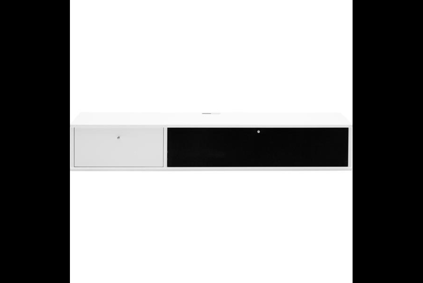 Let og elegant tv møbel i hvid med stof klap i sort, som lyd og signal let går igennem