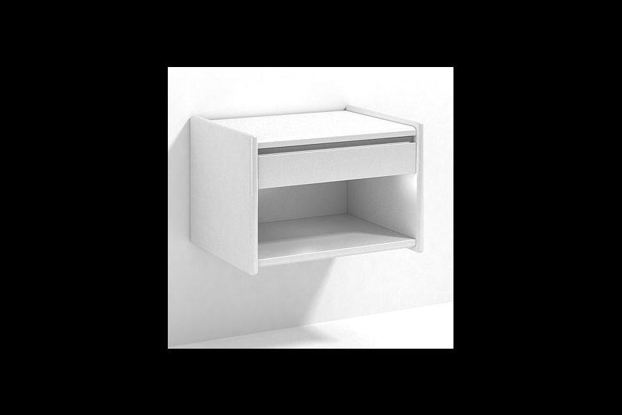 Elegant dansk produceret sengebord med en lav skuffe, til vægophæng.