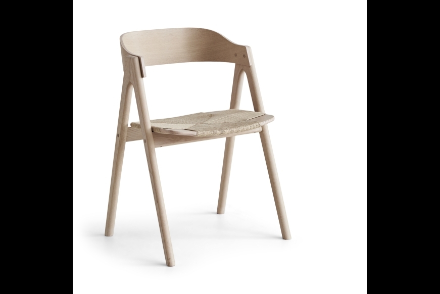 Mette spisestuestolen er designet af møbelarkitekt Carsten Buhl. Den formspændte ryg giver fin støtte til ryggen, og det behagelige sæde giver god siddekomfort. Den smukke ryg er lavet i formspændt finér, mens resten af stolen er i massivt træ.