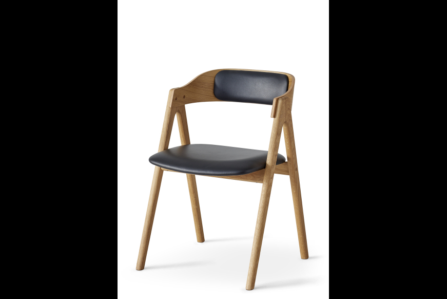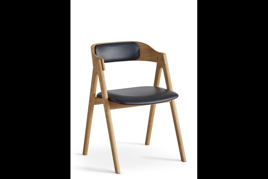 Mette spisestuestolen er designet af møbelarkitekt Carsten Buhl. Den formspændte ryg giver fin støtte til ryggen, og det behagelige sæde giver god siddekomfort. Den smukke ryg er lavet i formspændt finér, mens resten af stolen er i massivt træ.