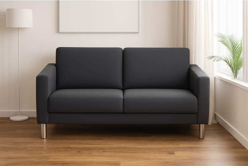 2 pers. sofa i kraftig stof. Fås også i læder.