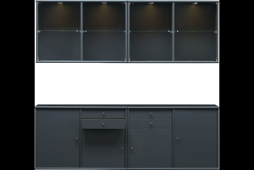 Info: Mistral skænk med væghængt overdelMål: B: 176,7 x H: 80,2 x D: 42 cm ( Skænk ) + B: 176,7 x H: 41,8 x D: 32,5 cm ( Overskab )