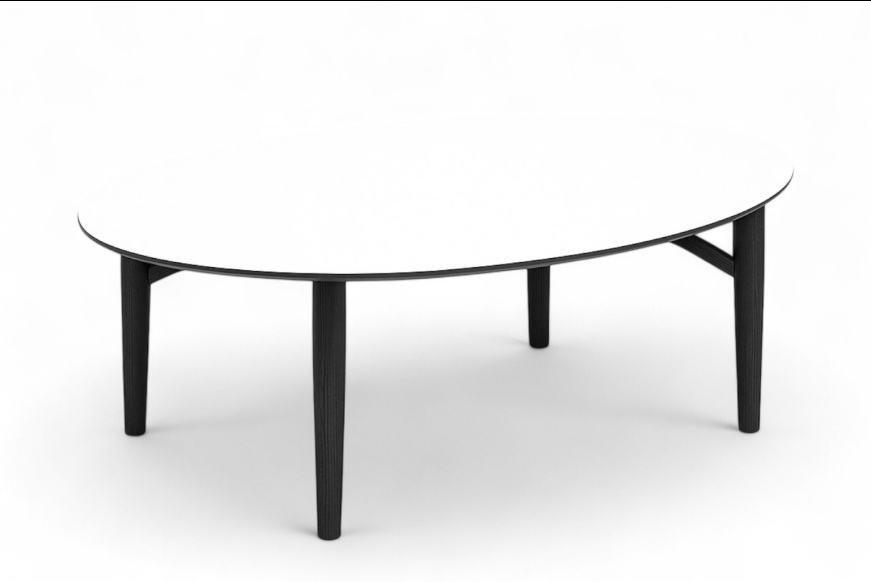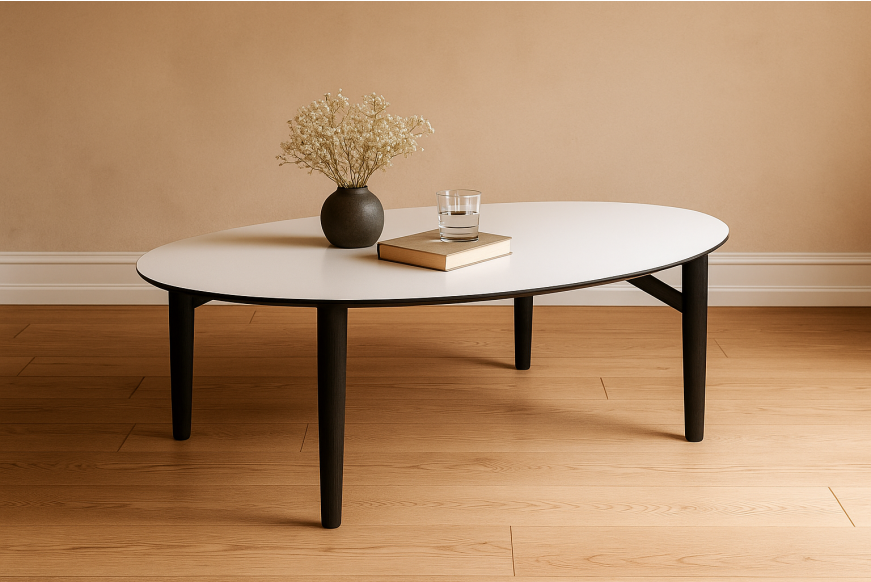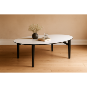 Design dit eget sofabord. Elipseformet sofabord 90 x 128 cm. Hvid laminat med sorte træben.