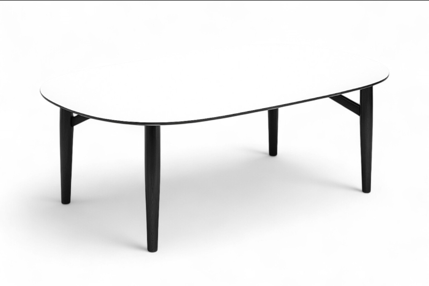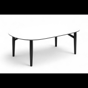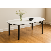 Design dit eget sofabord. Oval sofabord 90 x 128 cm. Hvid laminat med sorte træben.