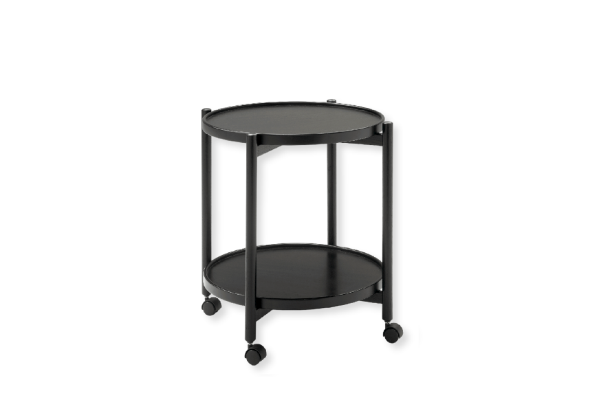 Klassisk dansk produceret bakkebord på hjul. I lakeret sort bejdset eg og med vendbar sort bejdset ege plade.